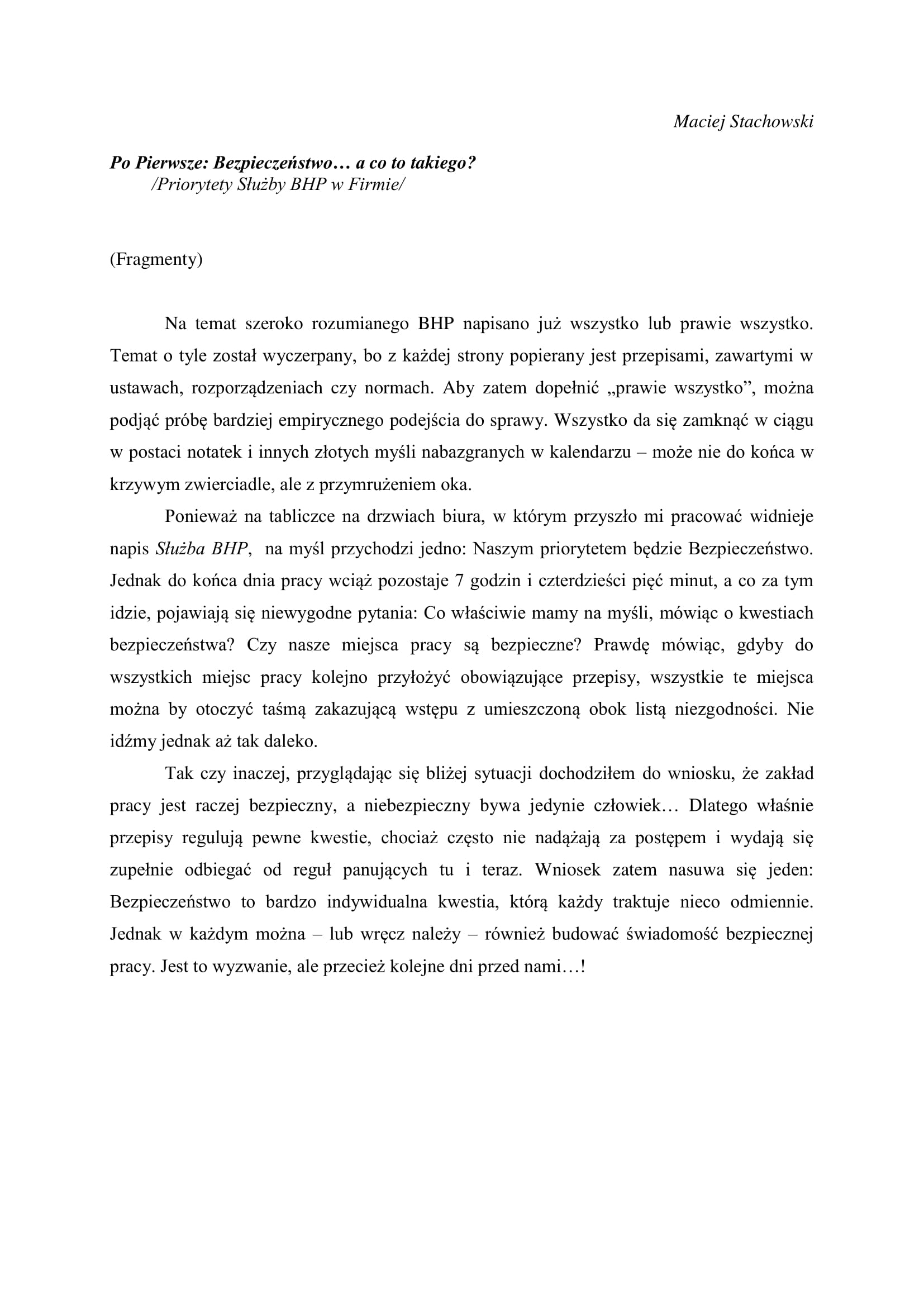 Na temat szeroko rozumianego BHP napisano już wszystko… lub prawie wszystko. Zapraszamy Państwa do lektury cyklicznych fragmentów książki „Z kalendarza BHP-owca…”. Sięgnij po szczere i pełne humoru zapiski. Przeczytaj a już nigdy nie spojrzysz tak samo na pozornie nudne kwestie związane z bezpieczeństwem w miejscu pracy.